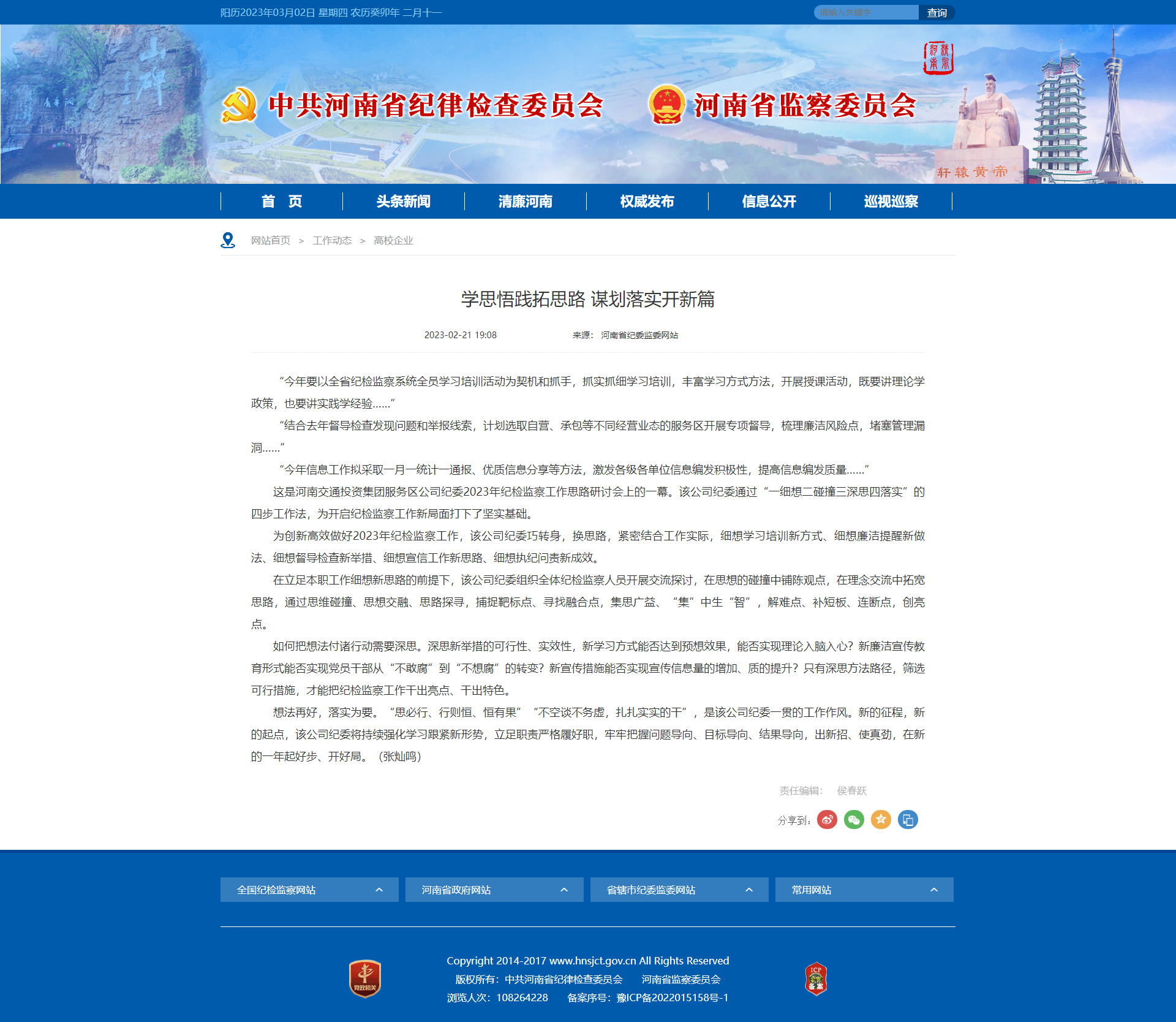 來源: 本站 發布時間: 2023-02-142月14日,公司紀委召開紀檢監察干部學習培訓動員部署會,學習傳達省紀委監委駐交投集團紀檢組《河南交通投資集團有限公司紀檢監察干部全員學習培訓工作方案》,安排部署學習培訓,并集中學習《黨的二十大報告》《習近平總書記在二十屆中央紀委二次全會上的重要講話精神》等內容…