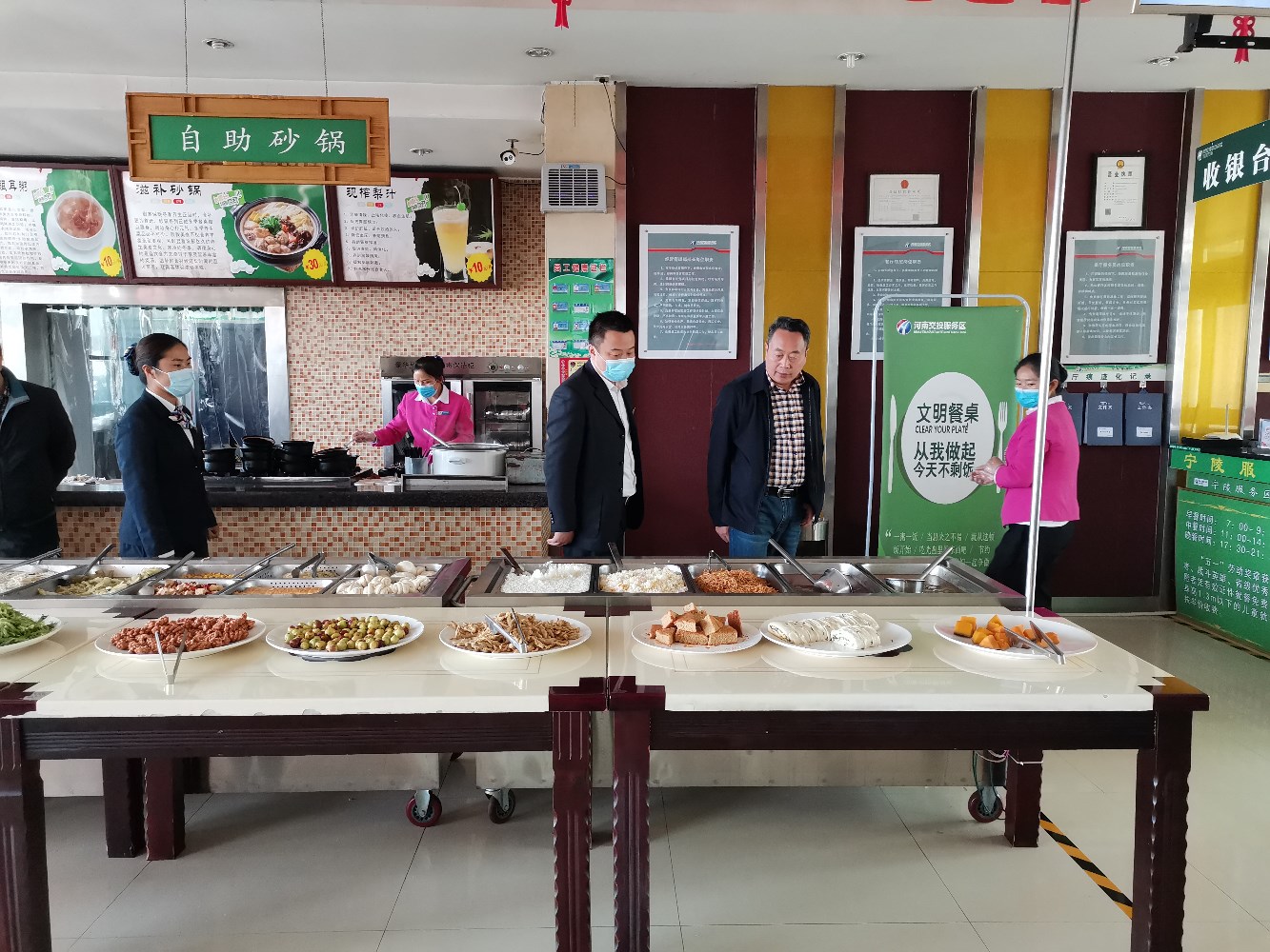 王宜偉書記、陳鵬部長(zhǎng)在直屬分公司紀(jì)委書記朱保軍、副總經(jīng)理武紅軍陪同下查看了服務(wù)區(qū)廣場(chǎng)、餐廳、廚原材料倉(cāng)庫(kù)、粗加工間等場(chǎng)所,并現(xiàn)場(chǎng)召開座談會(huì),詳細(xì)了解服務(wù)區(qū)黨風(fēng)廉政建設(shè)、廉潔風(fēng)險(xiǎn)防控、企務(wù)公開、經(jīng)營(yíng)運(yùn)行、員工生活等情況,認(rèn)真聽取基層干部員工的意見建議。最后,王宜偉書記就基層服務(wù)區(qū)認(rèn)真抓好下一步工作提出要求: