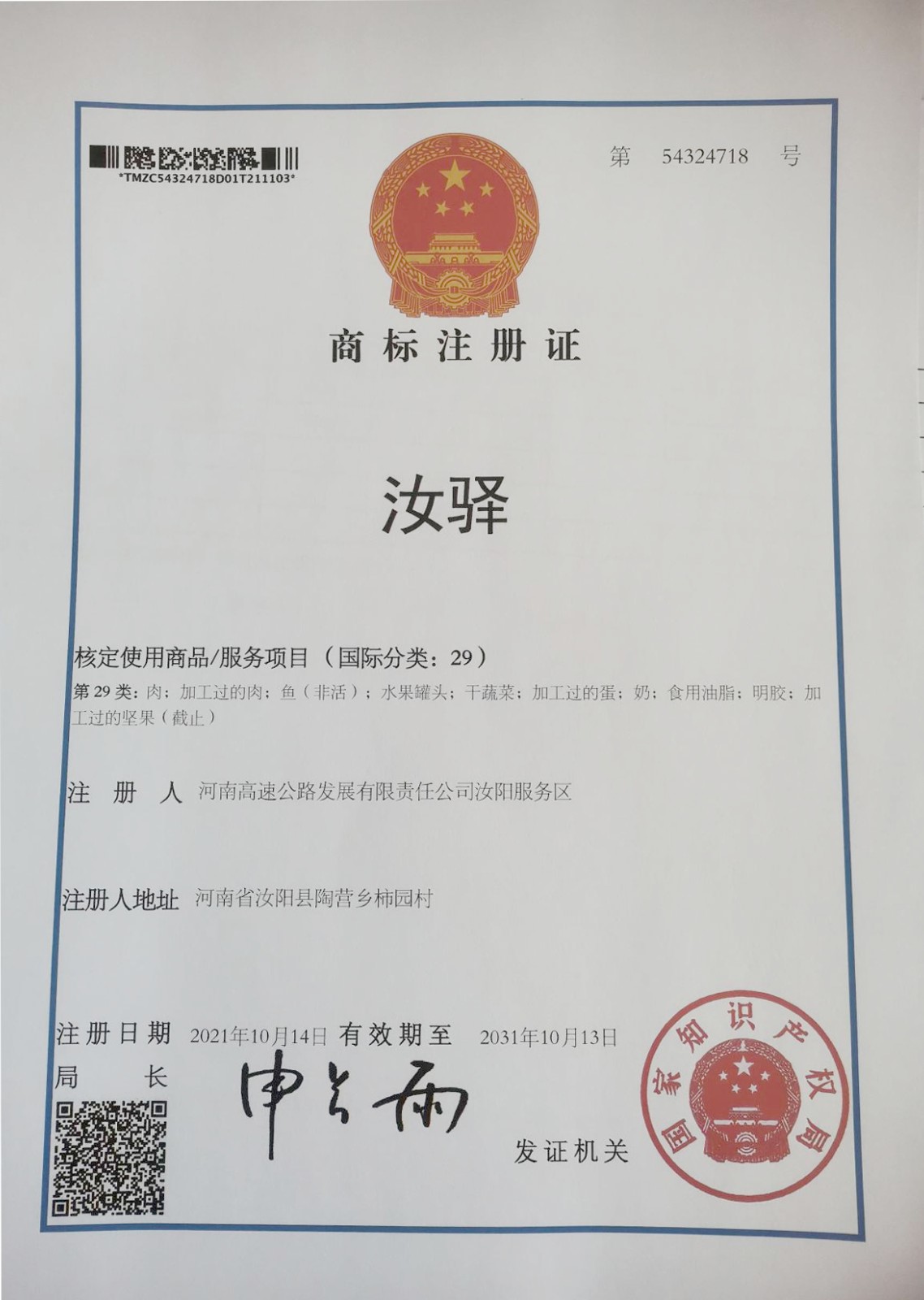 汝陽(yáng)服務(wù)區(qū)成功注冊(cè)“汝驛”商標(biāo)