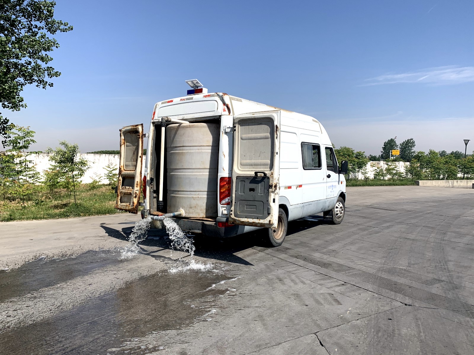 鄢陵南服務(wù)區(qū)自制水箱加強(qiáng)綠化管養(yǎng)工作
