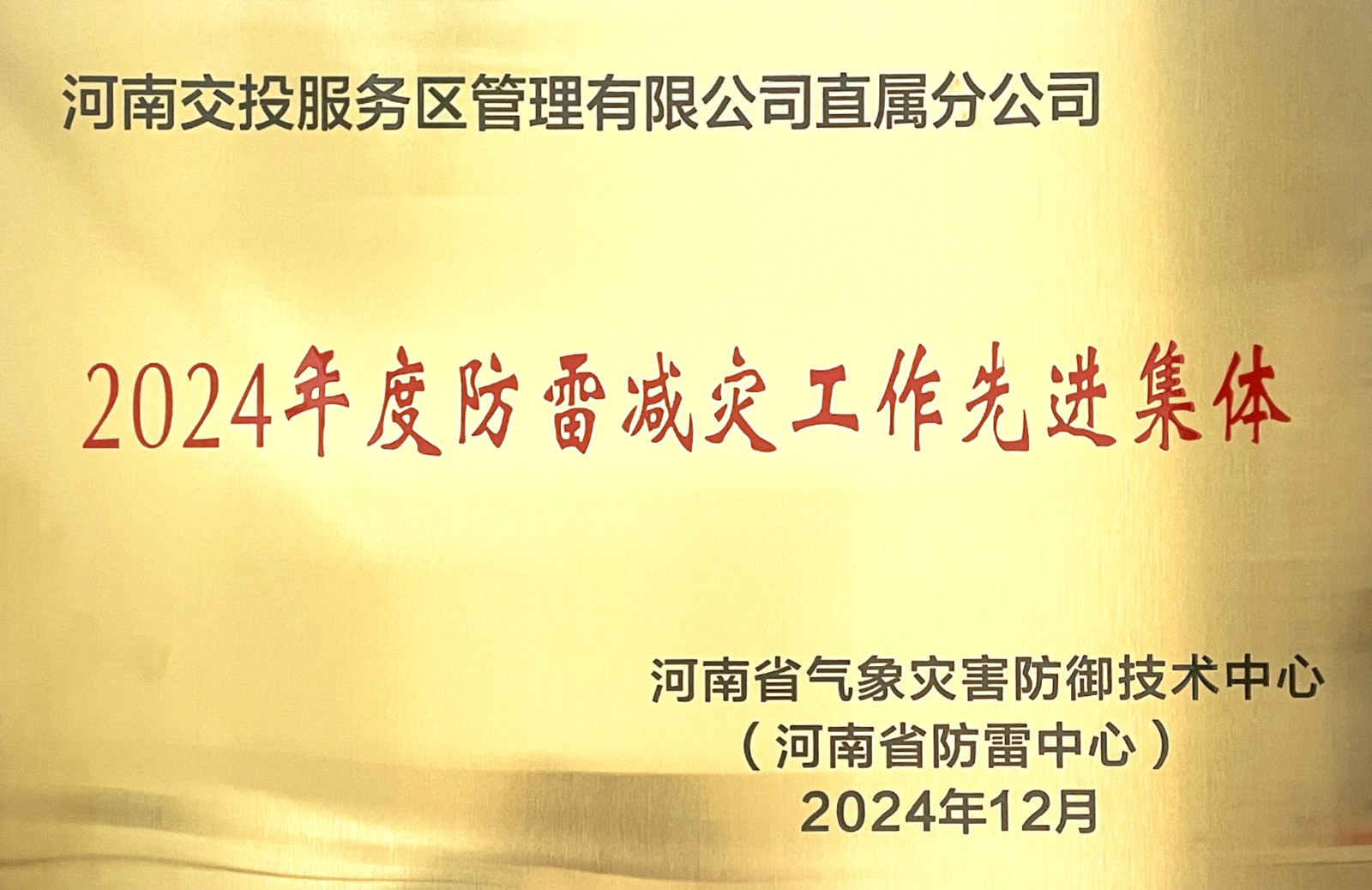 喜訊!直屬分公司榮獲“2024年度防雷減災工作先進集體”榮譽稱號