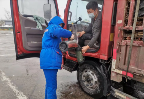 高速石化許昌加油站為司乘人員送上熱水,溫暖司乘心。徐姍姍 攝