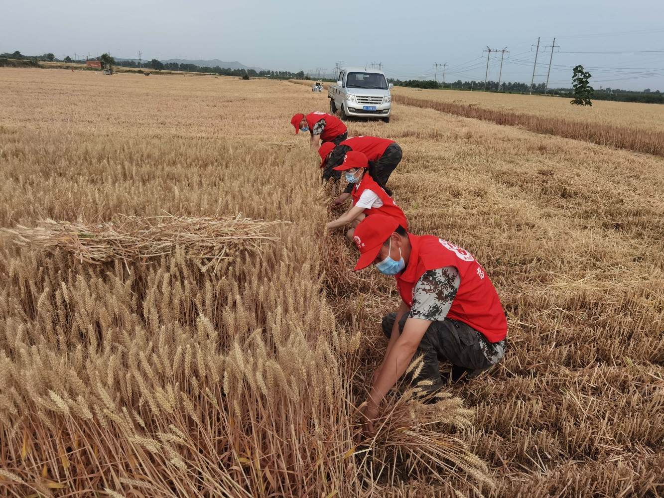 項(xiàng)城服務(wù)區(qū)黨員干部幫助困難職工搶收小麥。王鵬哲  攝