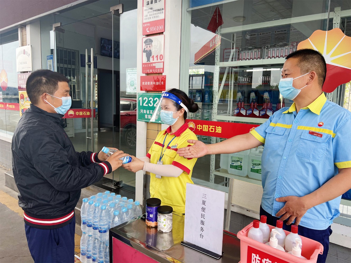 三門峽服務(wù)區(qū)加油站設(shè)置“三夏”便民服務(wù)臺(tái)。惠芳 攝