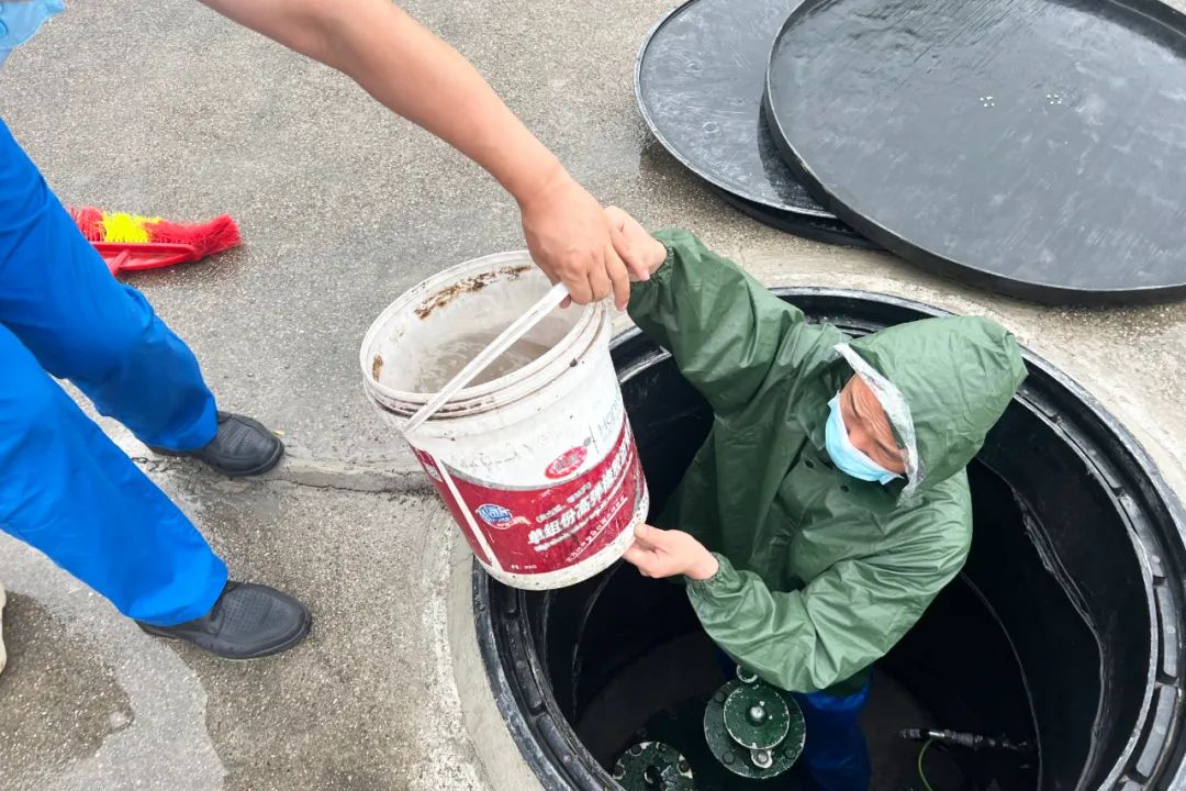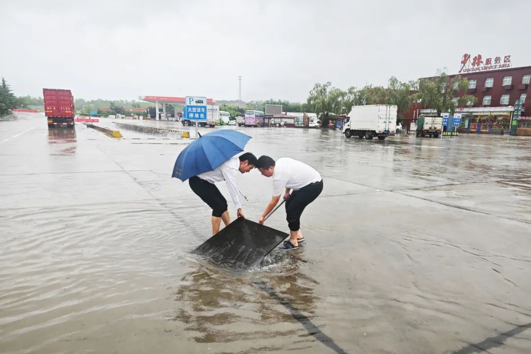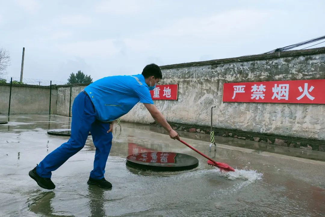 三門峽服務區加油站員工及時清理罐區操作井積水