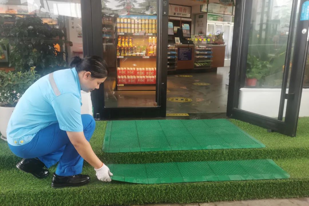 洛陽服務區加油站暖心鋪設防滑墊,確保顧客進出安全