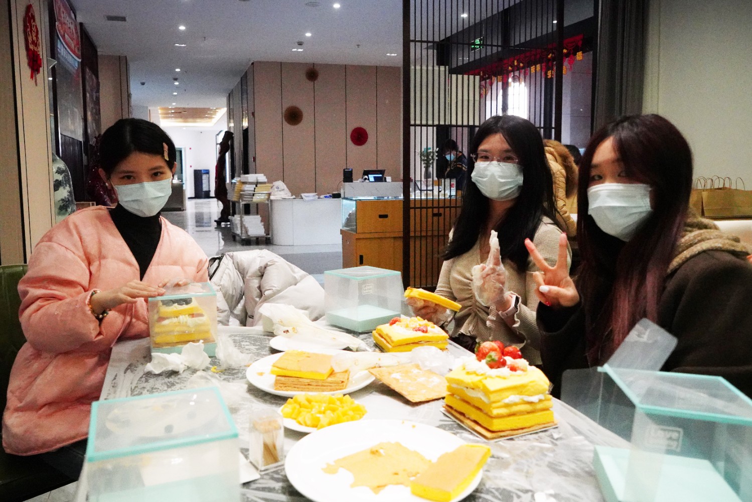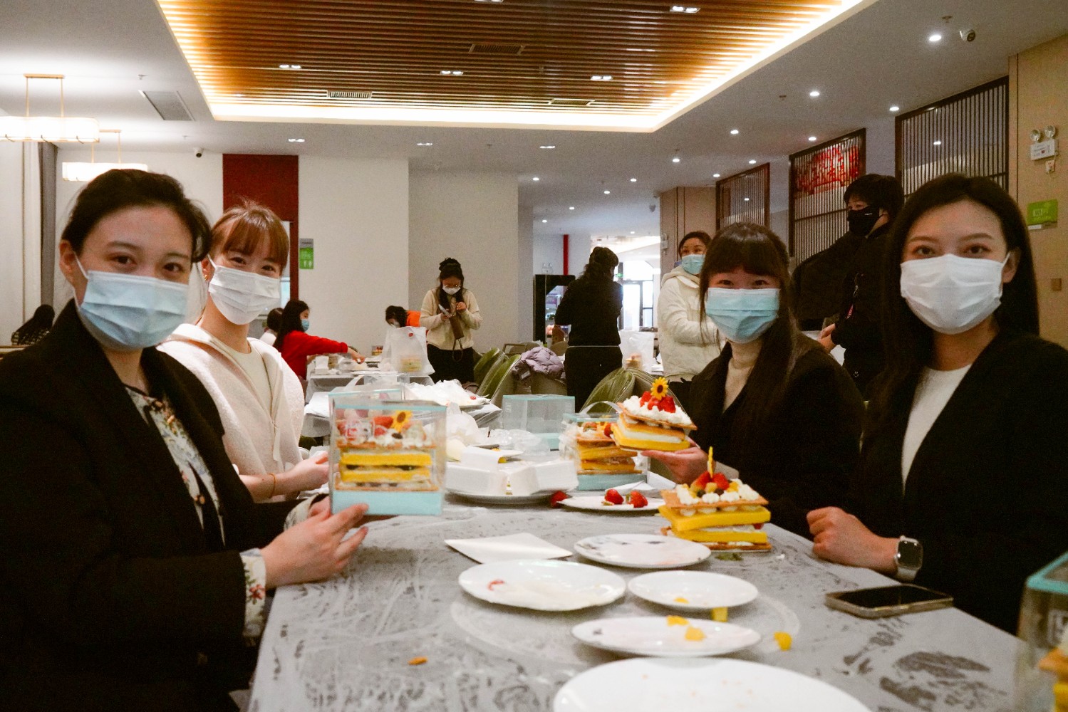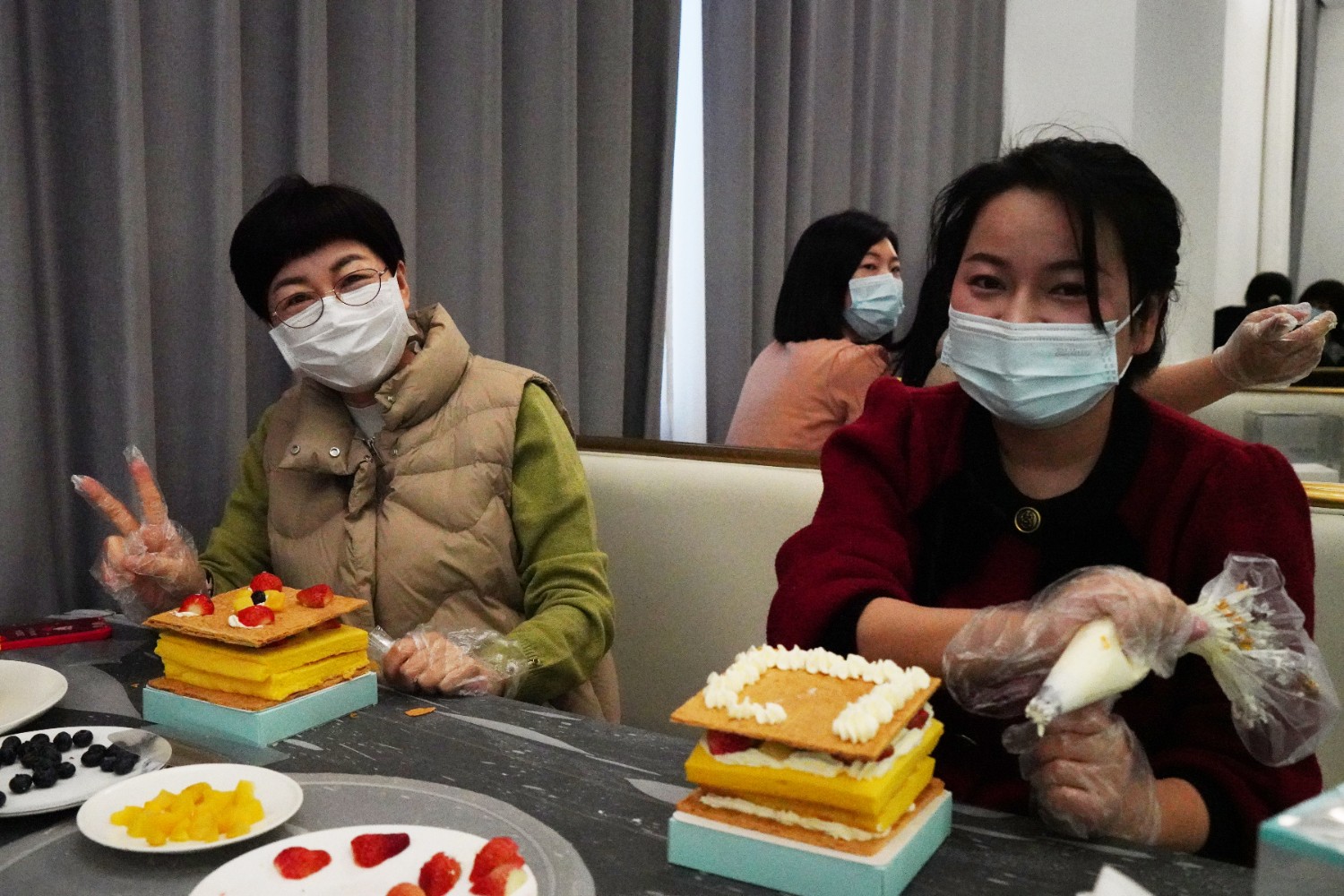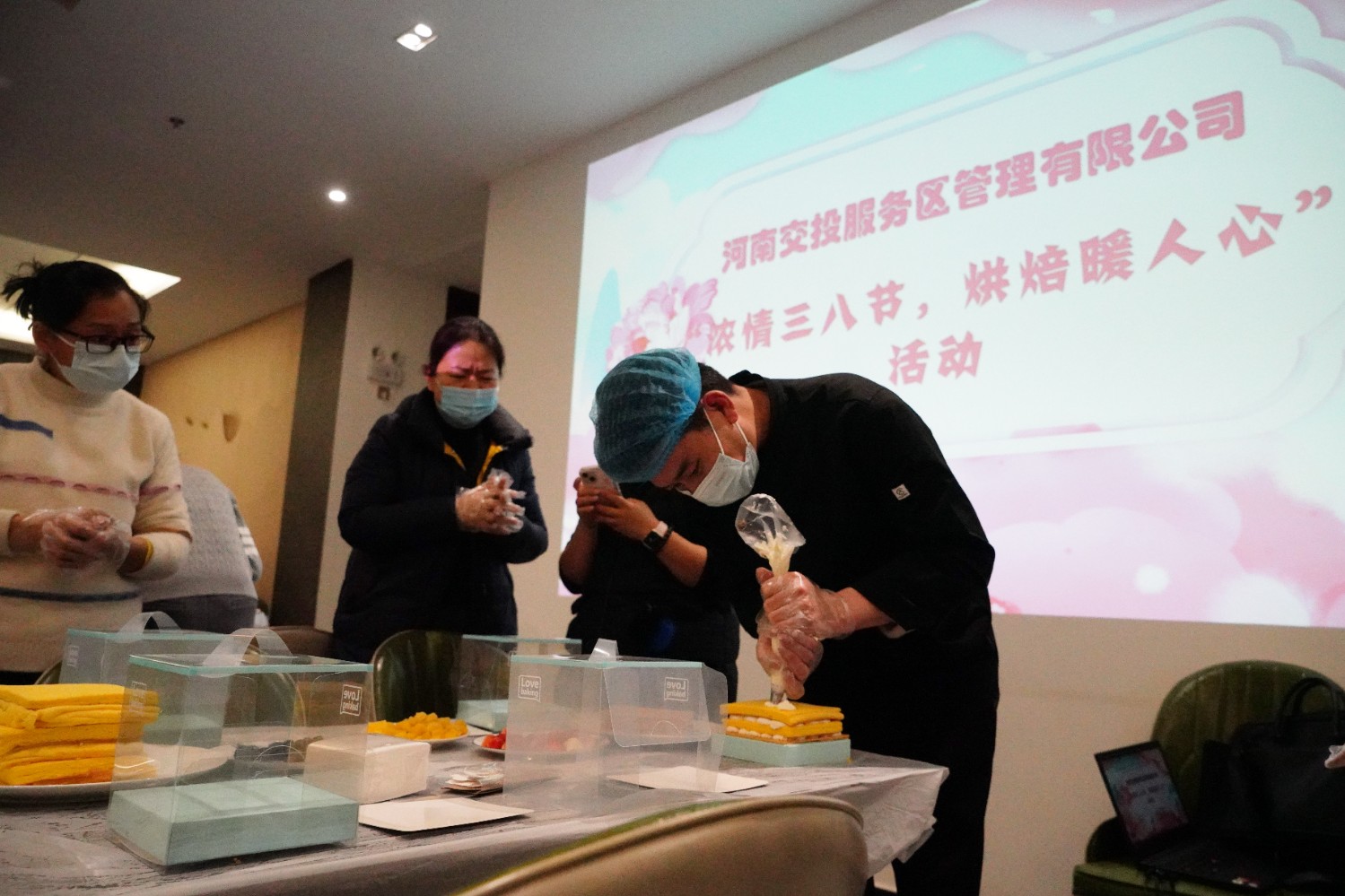 公司本部:組織開展“濃情三八節(jié),烘焙暖人心”活動,活動中,烘焙老師向大家講解相關(guān)烘焙知識和蛋糕制作步驟,大家仔細傾聽、認真揣摩,熟悉材料和用具后,細致抹奶油、精心裝飾水果,沉浸體驗動手創(chuàng)作的樂趣,活動現(xiàn)場陣陣歡聲笑語,一片其樂融融。