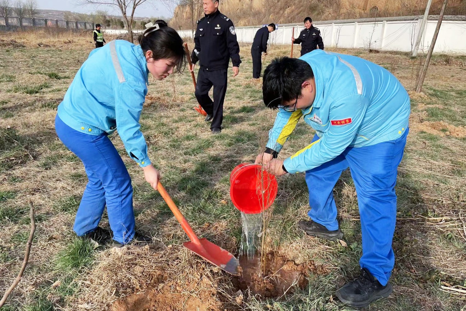 活動現場,大家熱情高漲、干勁十足,揮锨鏟土、栽種樹木、培土圍堰、踩土壓實……每個環節都配合默契,整個過程細致認真、有條不紊。一番勞作后,為服務區添了一抹亮麗的新綠,也為春日大地增添著勃勃生機,大家用實際行動詮釋守護綠水青山的初心與使命。