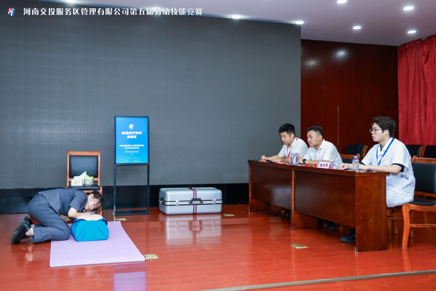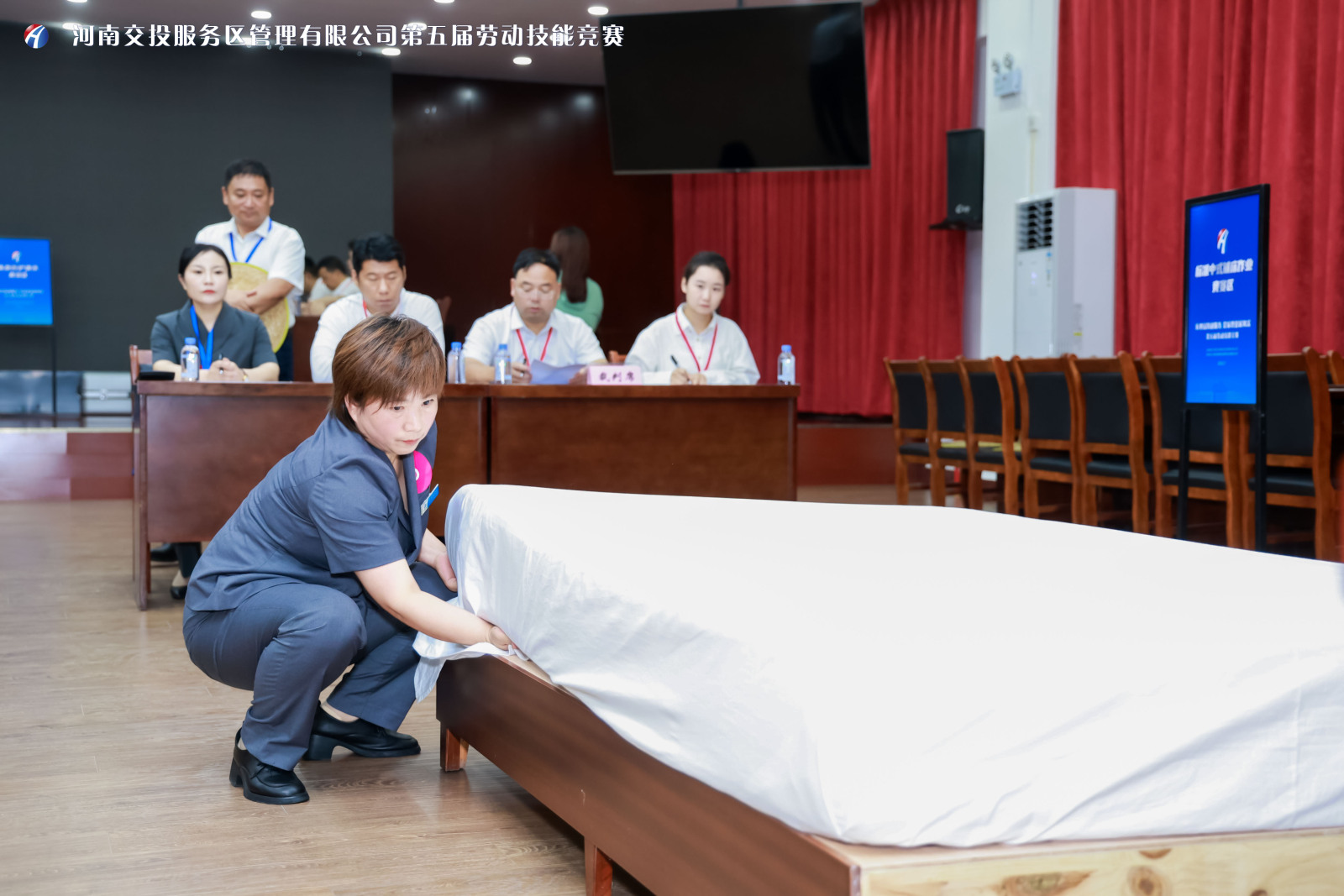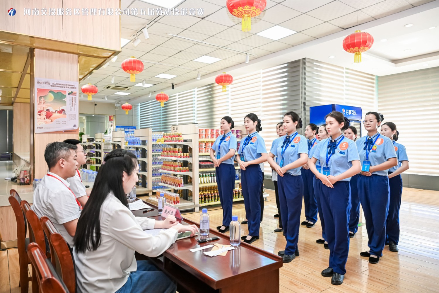 本次勞動技能競賽涵蓋運營管理理論知識與實操技能在內(nèi)10個競賽項目,包括服務區(qū)、加油站運營管理知識筆試、衛(wèi)生間保潔標準化作業(yè)、餐廳收臺清潔標準化作業(yè)、超市標準化服務、標準中式鋪床作業(yè)、汽修廠更換備胎作業(yè)、交通疏導旗語演示、廚師技能比武、加油站服務操作流程、應急救護,項目設置聚焦標準化、規(guī)范化、精細化服務要求,旨在全方位檢驗和提升員工專業(yè)能力和應急處置水平。
