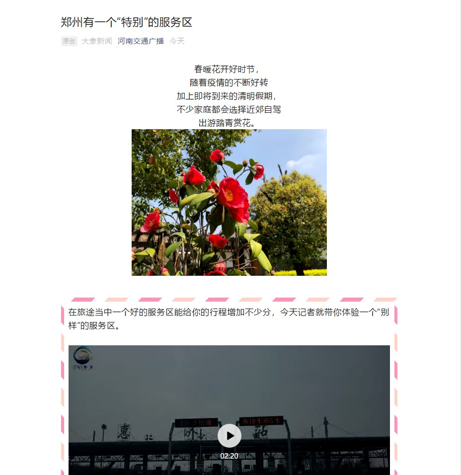 河南交通廣播:鄭州有一個“特別”的服務區