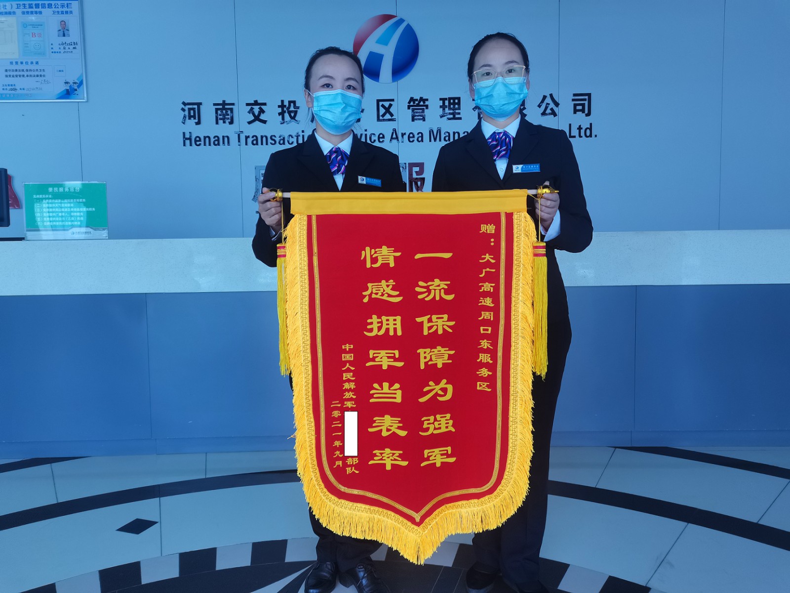 2021-10-13 作者:10月12日,周口東服務區收到福建省解放軍某部隊寄來的一面寫著“一流保障為強軍 情感擁軍當表率”的錦旗,隨錦旗一同寄來的還有一封感謝信。原來在河南720暴雨災害搶險期間,解放軍某部隊馳援河南兩次途經周口東服務區進行臨時休整及食宿,服務區針對部隊服務保障要求精心組織…