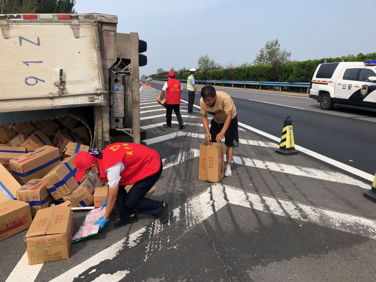 輕型卡車側翻漏油 項城服務區迅速處置