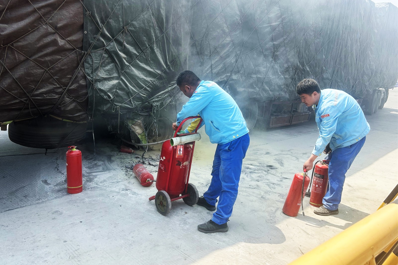 大貨車突發(fā)自燃 三門峽服務區(qū)緊急救援顯真情