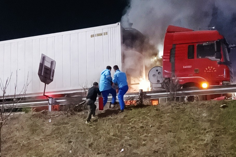 貨車突發(fā)自燃 鳳泉停車區(qū)妥善處置顯擔當