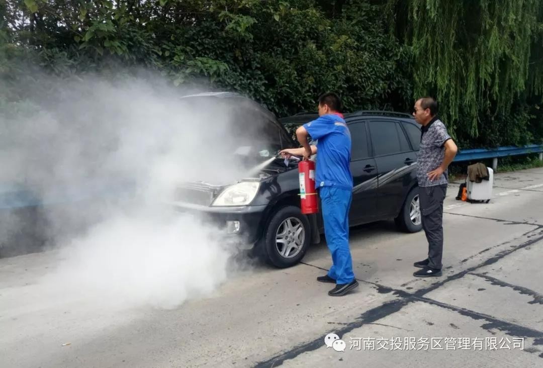 小車自燃 漯河服務區(qū)工作人員化身“消防員”緊急施救