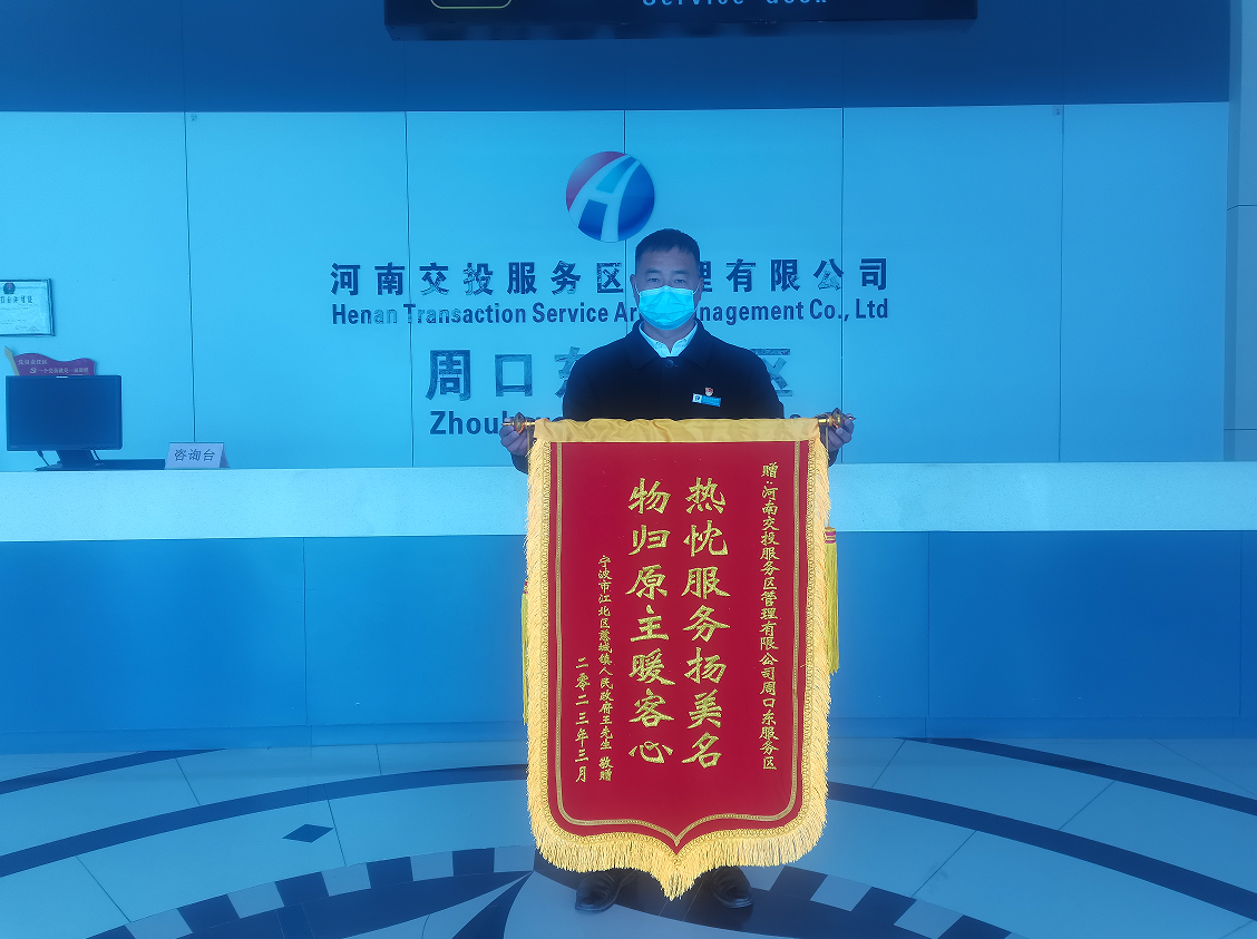 2023-03-17 作者:3月17日,周口東服務區收到寧波市江北區慈城鎮人民政府王先生寄來的一個快遞,里面放著一封感謝信和一面寫著“熱忱服務揚美名,物歸原主暖客心”的錦旗。2月21日,周口東服務區餐廳服務員李秀靈在打掃衛生時撿到一個黑色背包,在詢問周圍人員均無人認領后,便將背包上交至辦公…