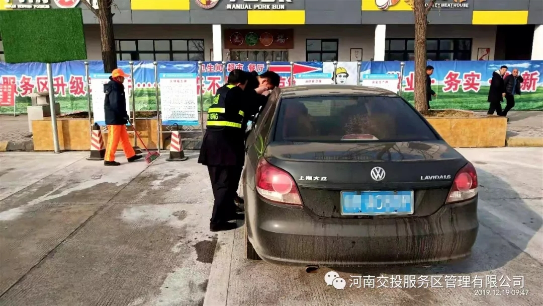 12月19日,漯河服務區值班人員發現一位年邁的老人正吃力的推著坐在輪椅上腿腳不便的老伴,工作人員迅速上前幫助,并問清需求。及時將老人送至第三衛生間,待老人如廁后,又將老人安全送至車上,受到兩名老人及過往司乘贊賞。12月19日,一名司機大意將車鑰匙反鎖在車內,駐馬店服務區值班監管袁向偉熱心幫忙,及時幫助車主打開車門,將車主的損失降到了最低。車主連連道謝,為服務區主動排憂解難的精神表示感謝。