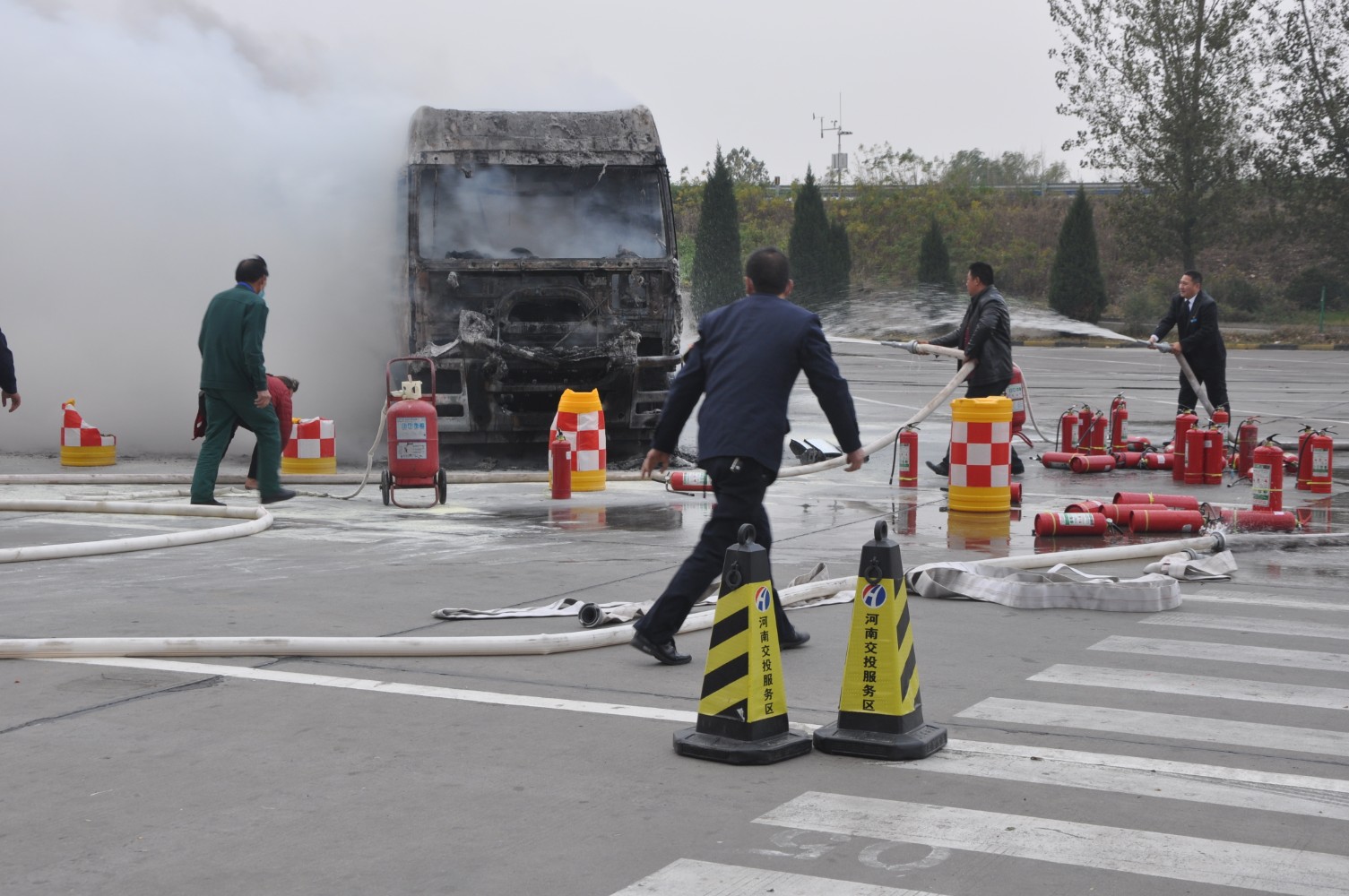 情況緊急,服務區、加油站第一時間啟動車輛自燃應急預案:一方面用錐形標對現場進行隔離,有序疏散圍觀人員以及停放的車輛,劃出安全區;一方面組織員工集中干粉滅火器進行撲救,同時安排開啟消防栓。服務區經理張鯤和副經理南江波奮勇當先,帶領十余名員工奮戰在搶險第一線,六十多個干粉滅火器用完,消防栓接連消防水帶繼續進行滅火。9:37分,火勢全部撲滅。